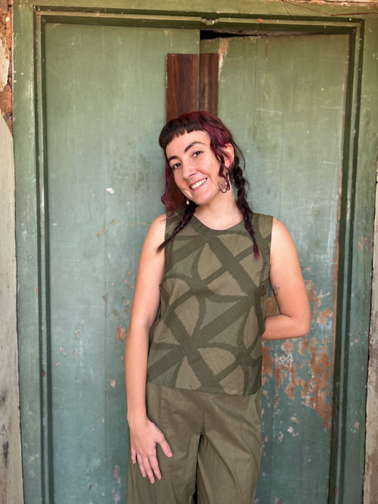 Sleeveless‘I’m Cross Top’ in Urban Camo Breezeblock Print