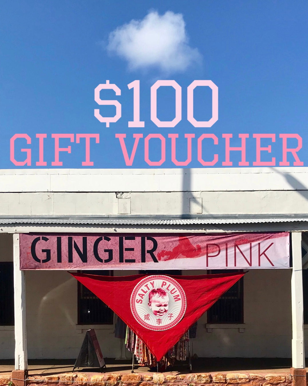 $100 Ginger Pink Gift Voucher Expires 3 years after purchase Redeemable in store or online Thanks for supporting a small local business :)