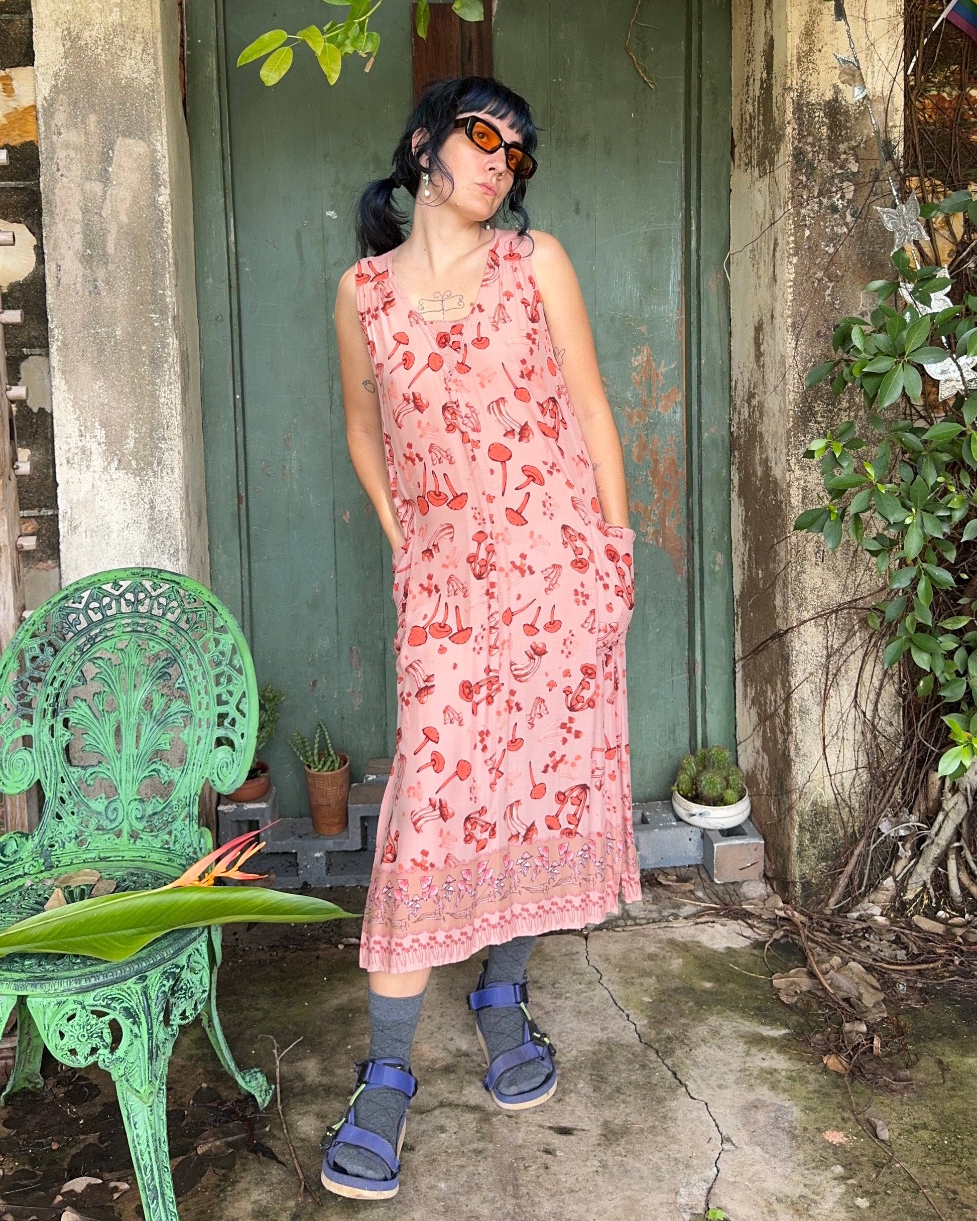 Dun dun daaaaa introducing the Ankle biter dress in our sweet Peachy Mushroom print