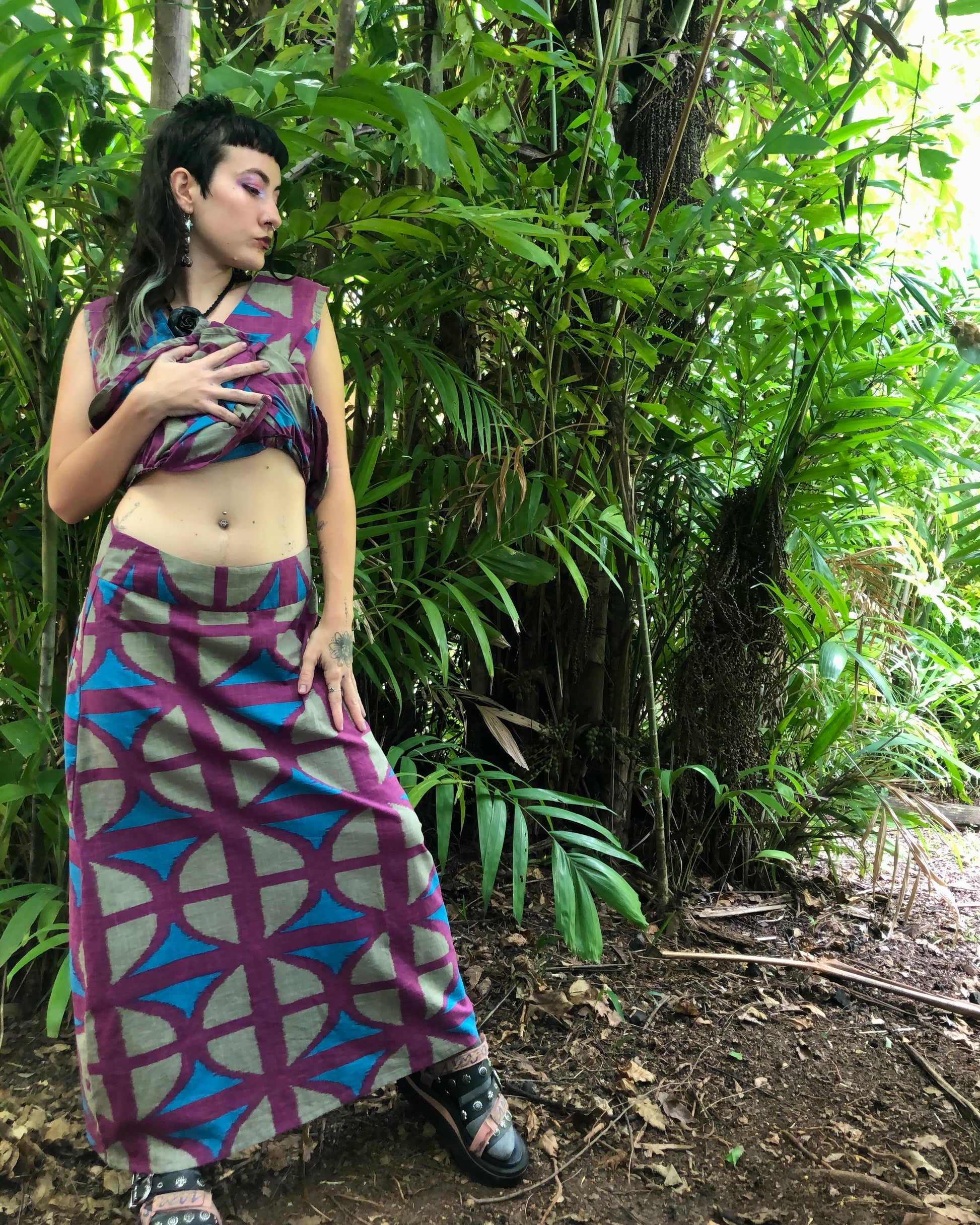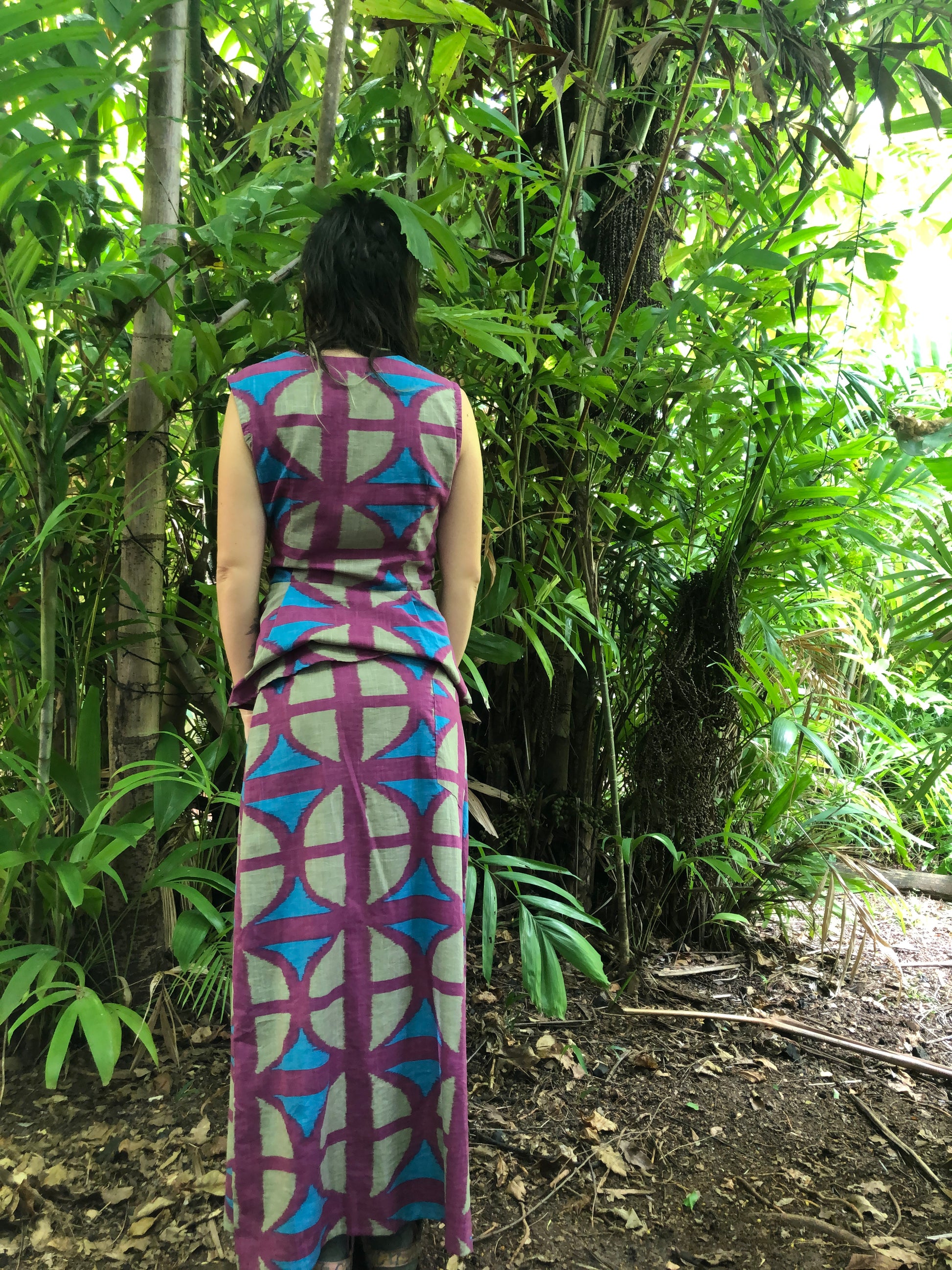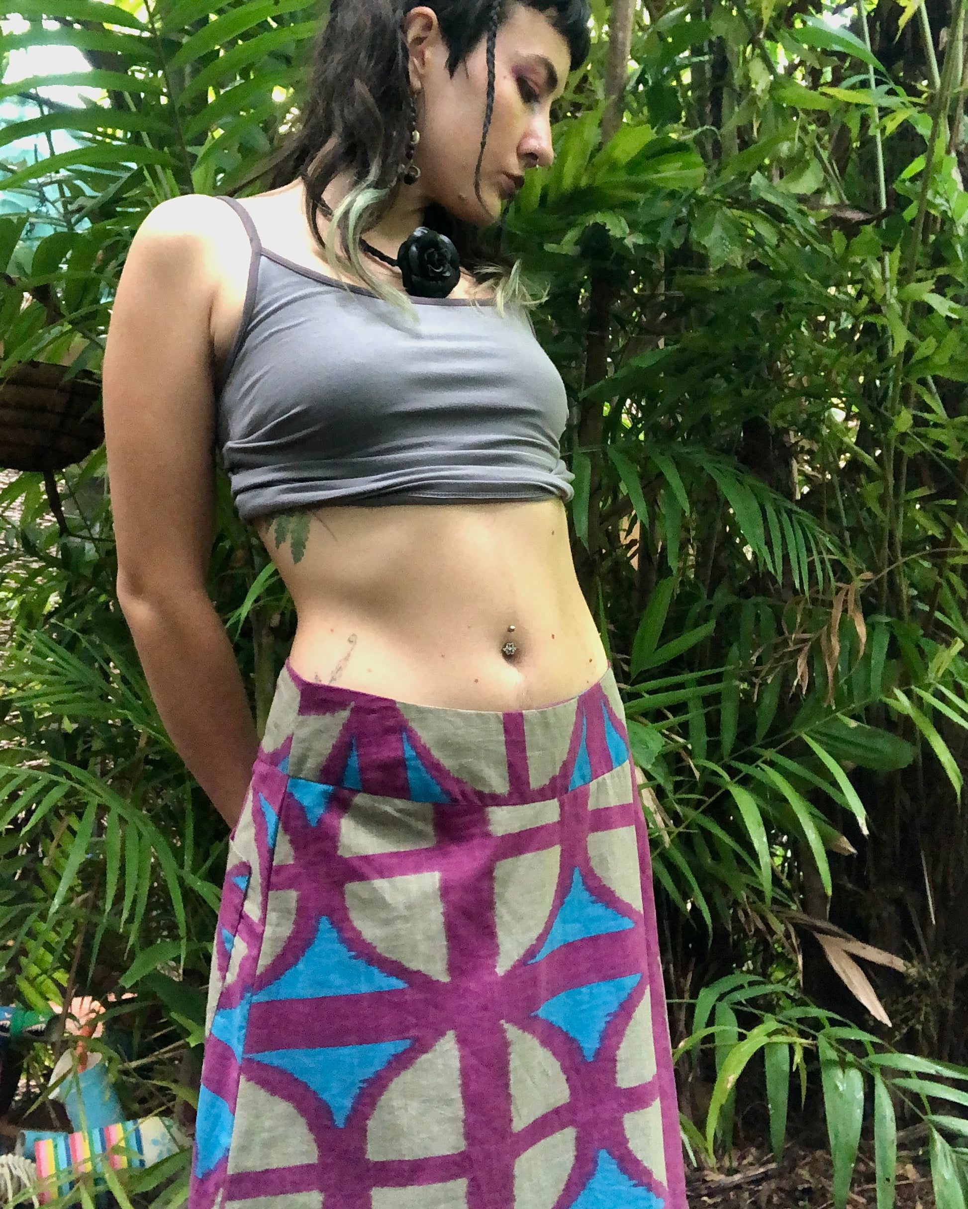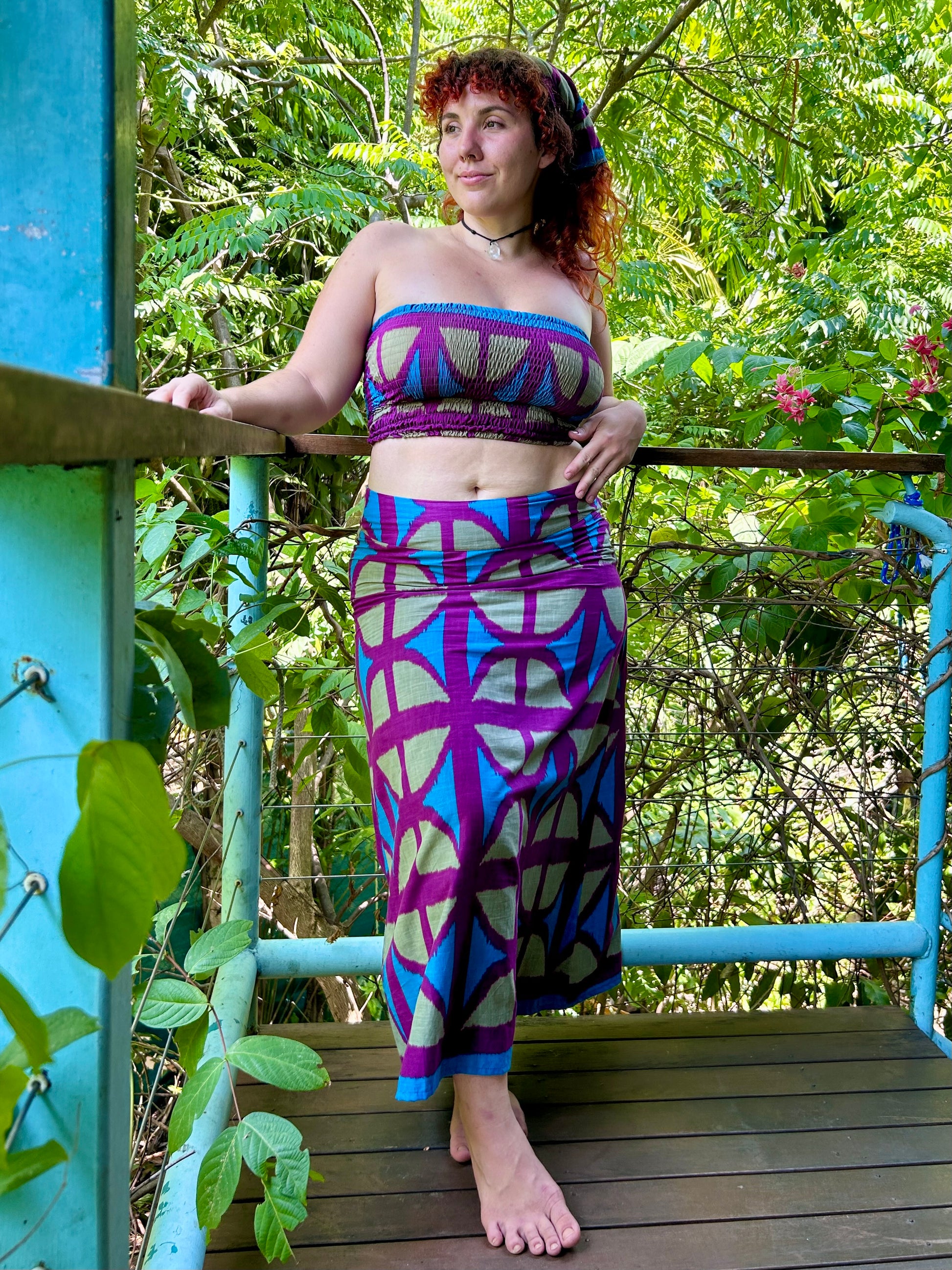 Long A-line Skirt in our very own EXCLUSIVE screen-printed Breezeblock motif fabric in lightweight, cotton slub!