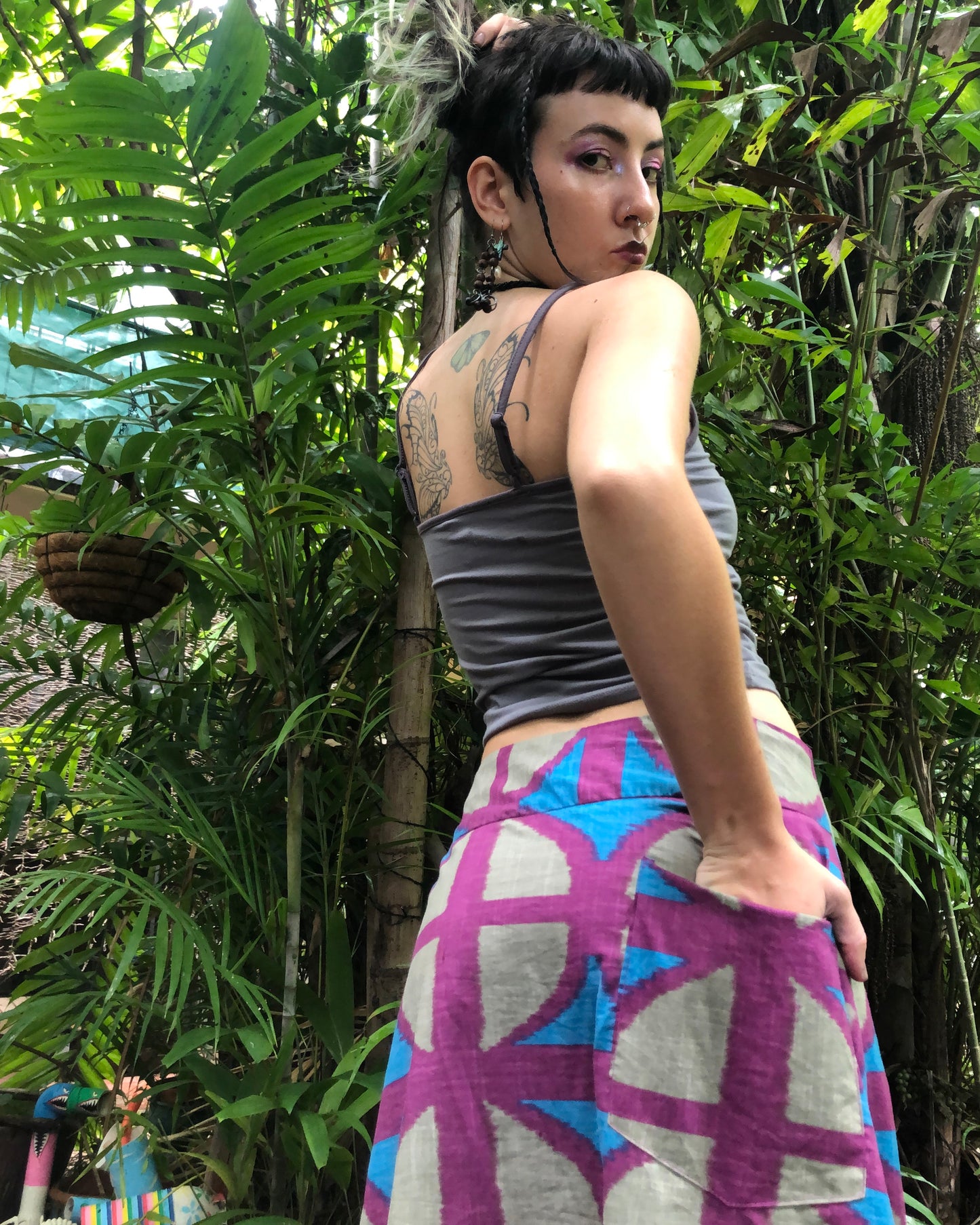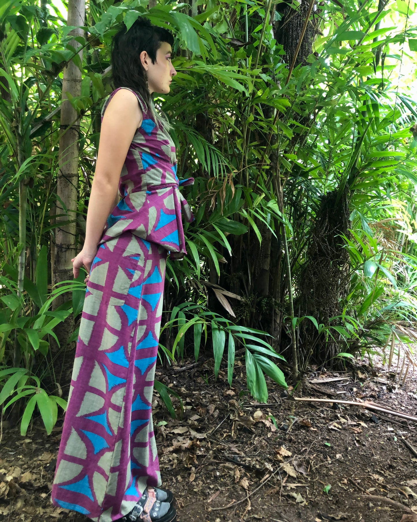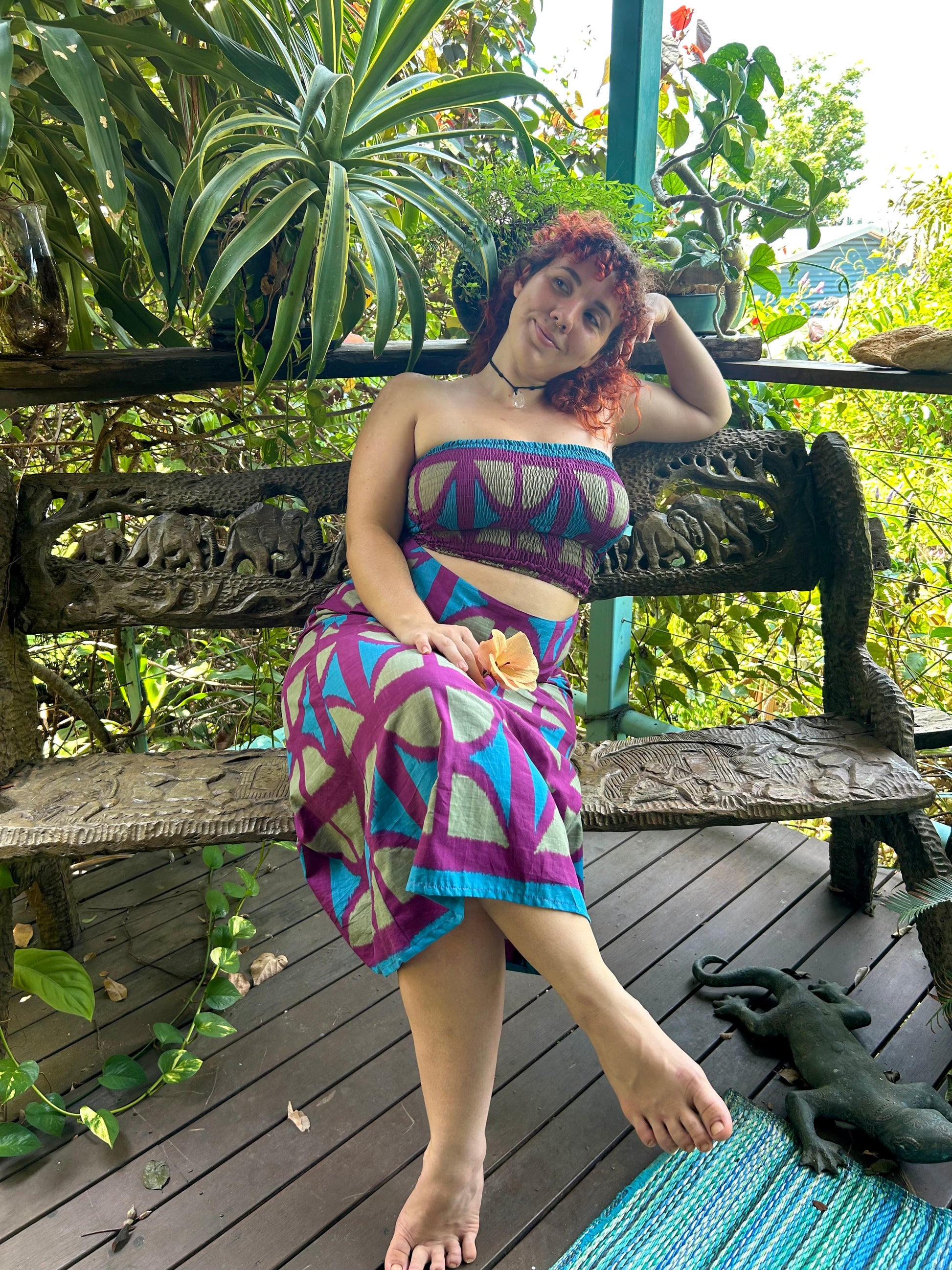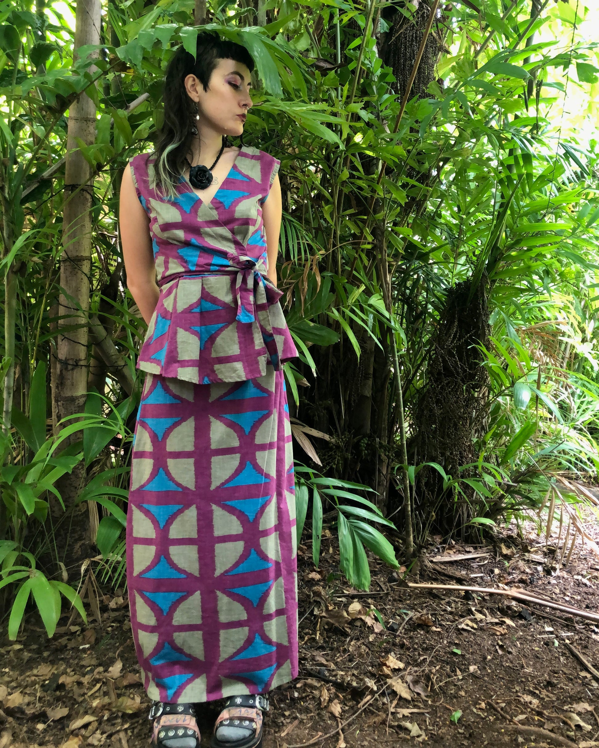 Long A-line Skirt in our very own EXCLUSIVE screen-printed Breezeblock motif fabric in lightweight, cotton slub!