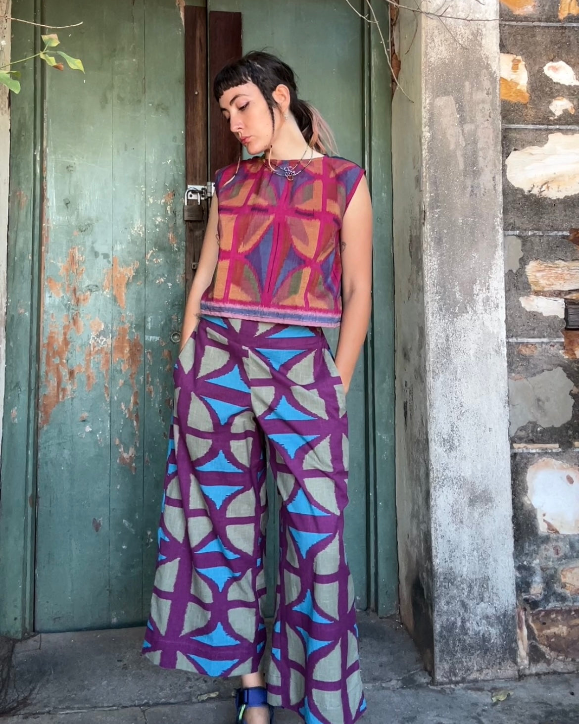 In our very own EXCLUSIVE screen-printed Breezeblock motif fabric in lightweight, cotton slub!