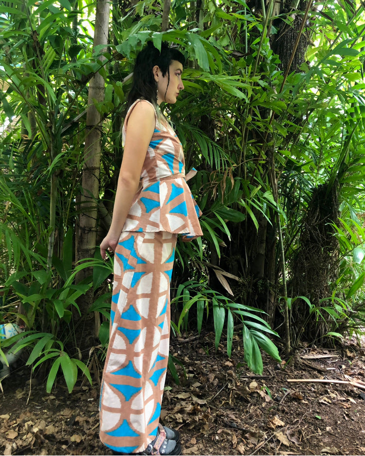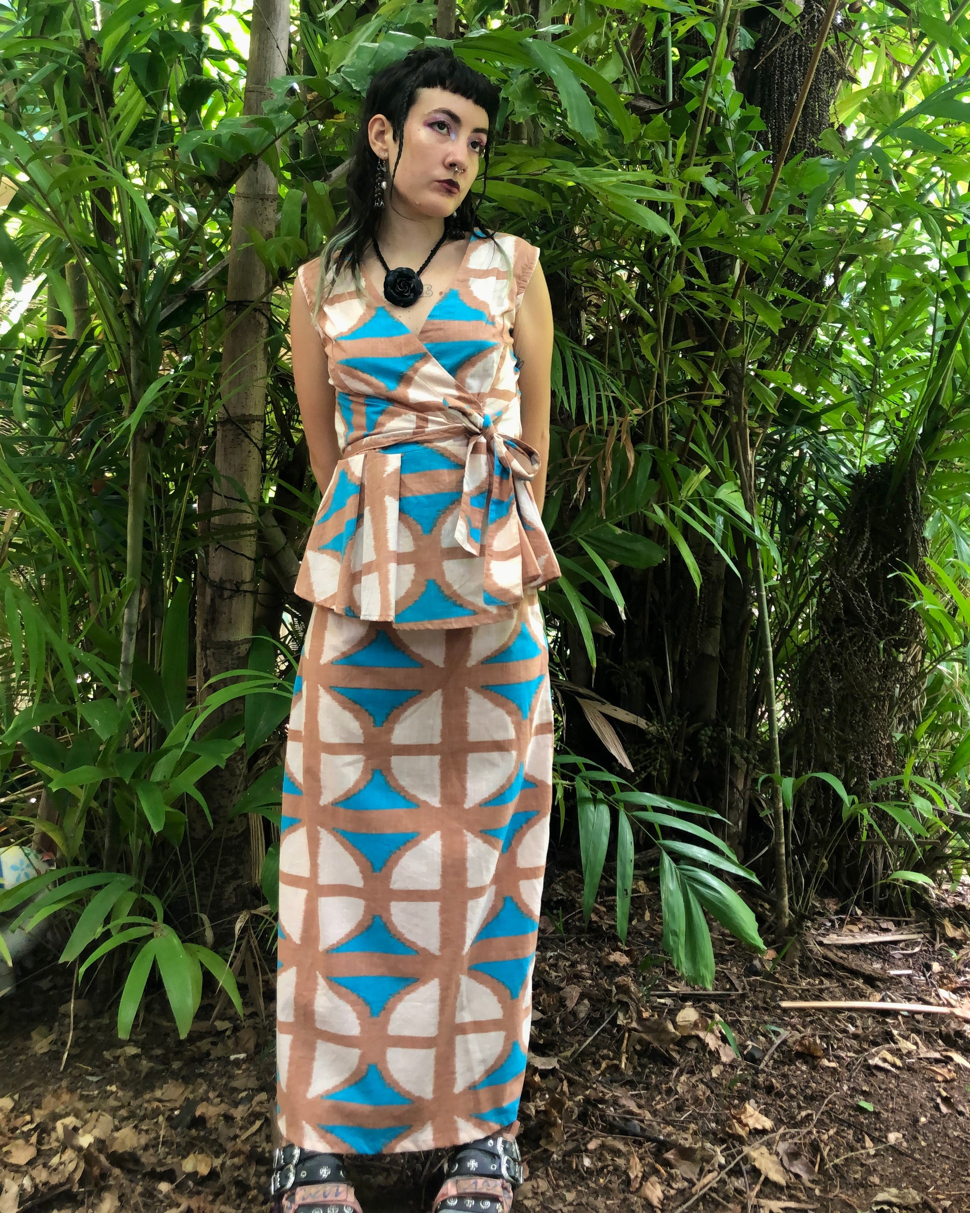 Long A-line Skirt in our very own EXCLUSIVE screen-printed Breezeblock motif fabric in lightweight, cotton slub! In our Cas Beach colour way!