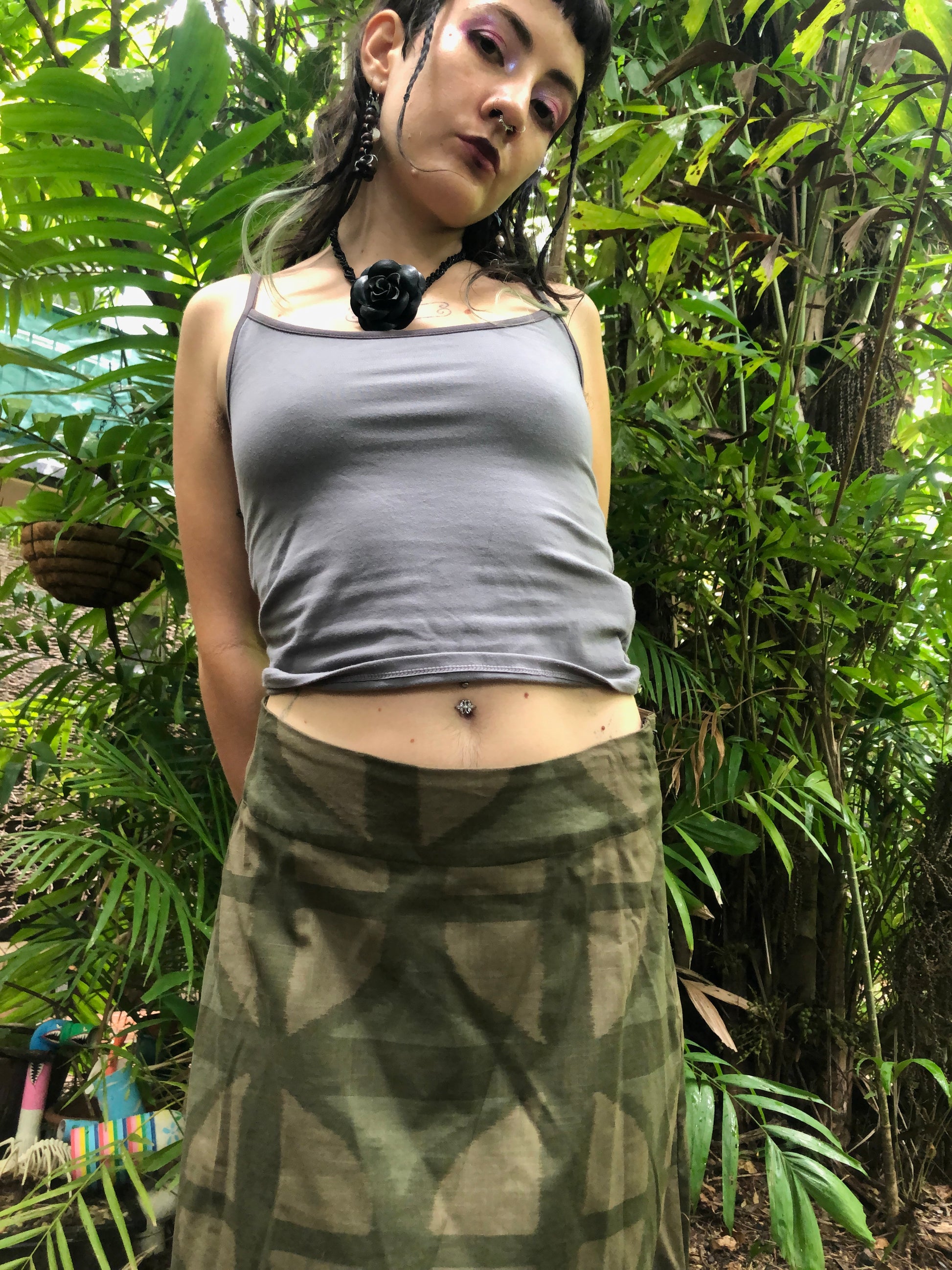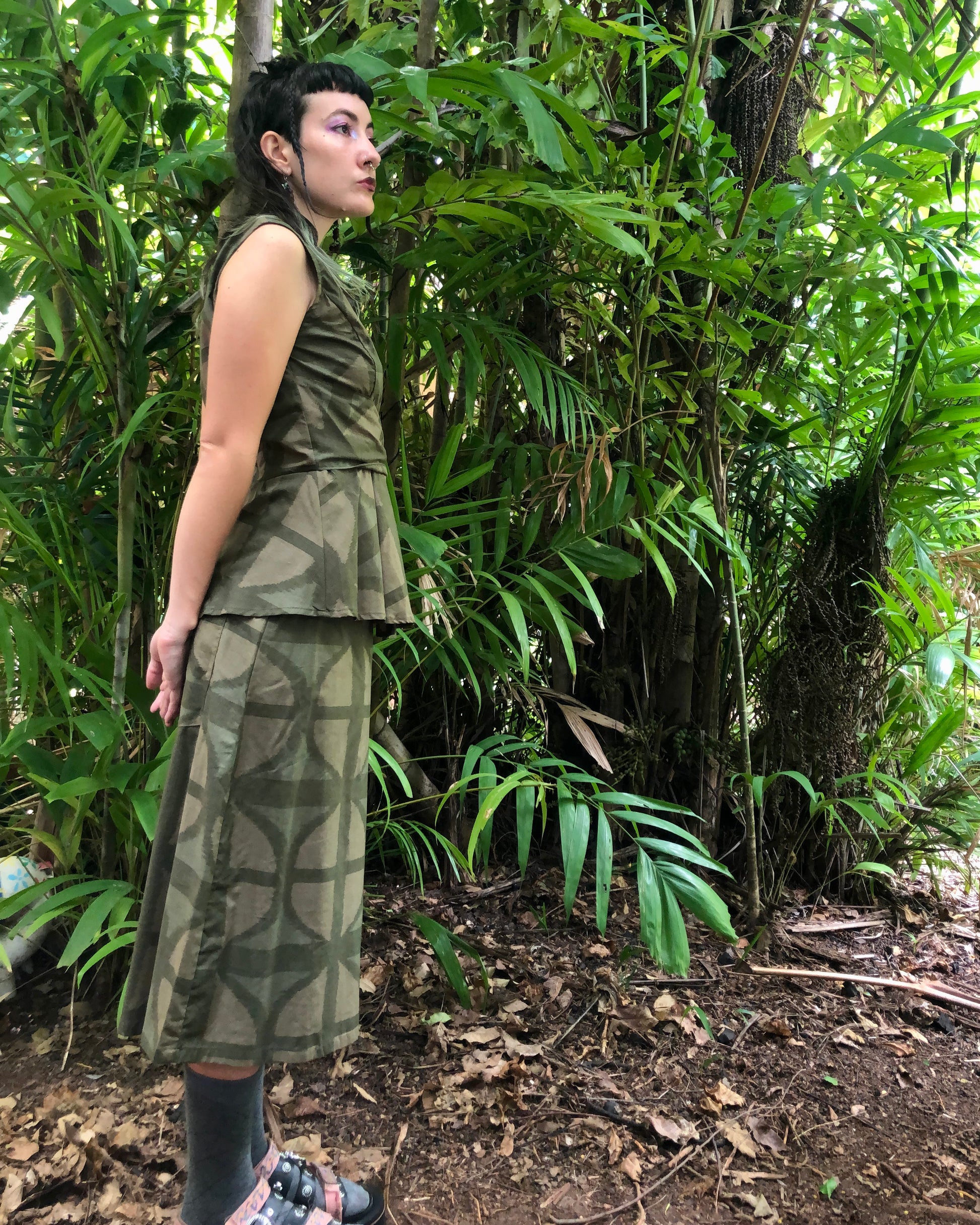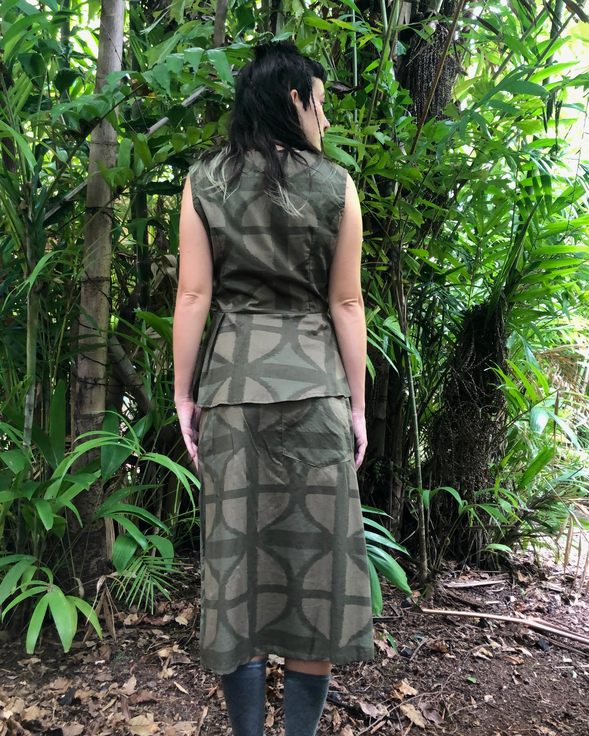 Midi A-line Skirt in our very own EXCLUSIVE screen-printed Breezeblock motif fabric in lightweight, cotton slub! In our Urban Camo colour way! Side zip, 70 cm long