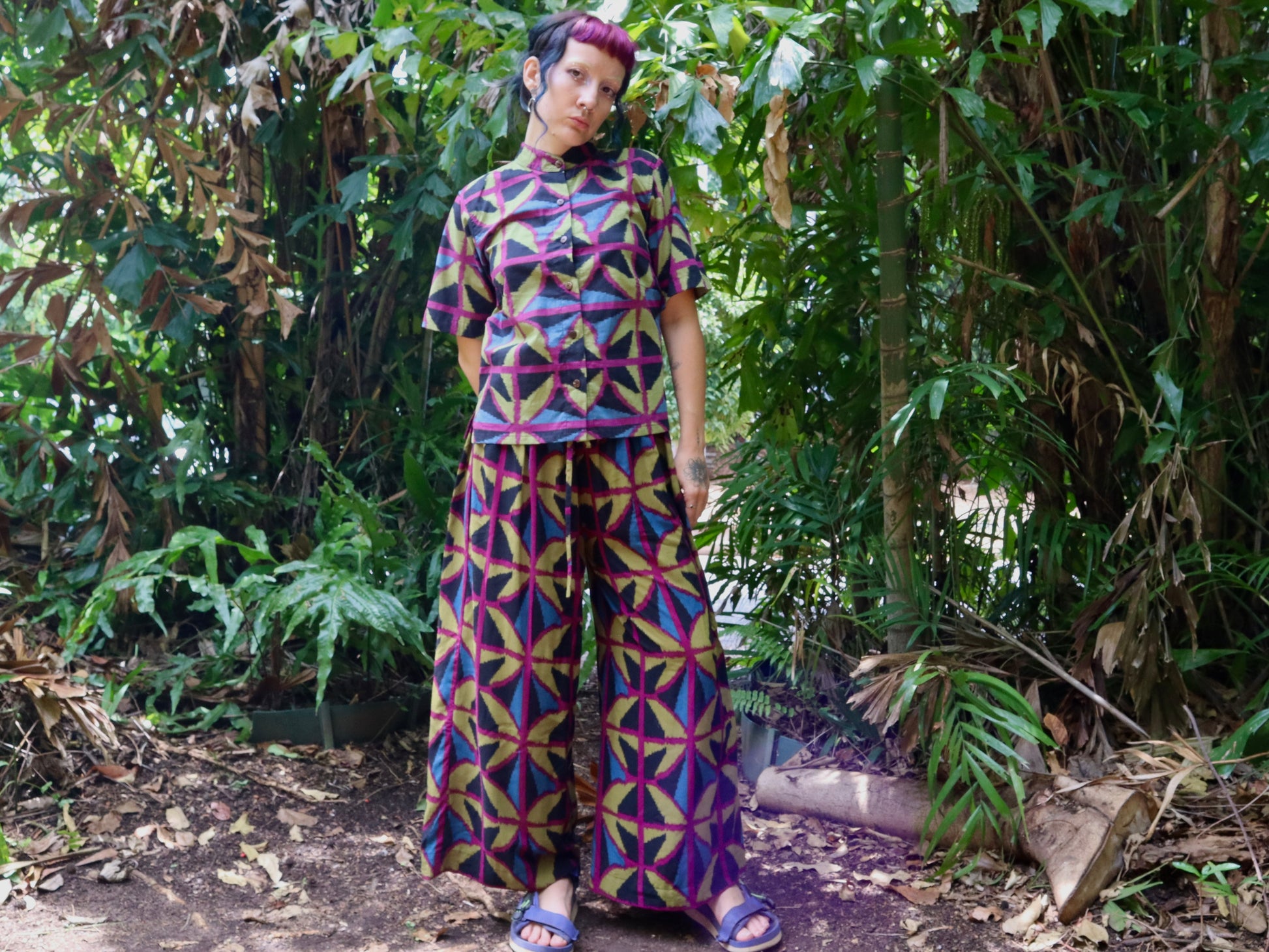 Featuring our very own EXCLUSIVE screen-printed Breezeblock motif fabric in lightweight, cotton slub.