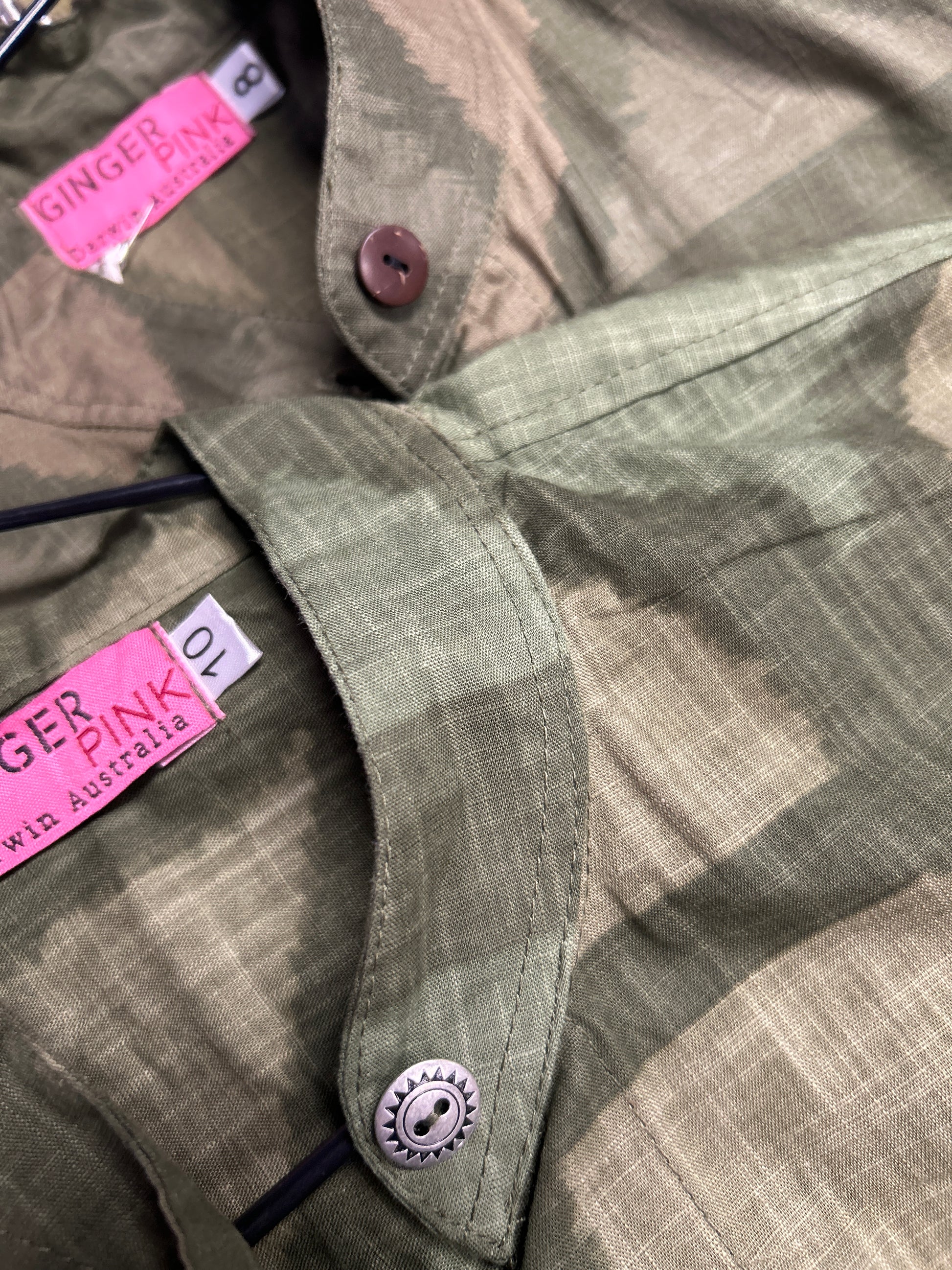 Buttons may be coconut or metal And due to the screenprinted nature of the fabric there may be slight variations in the tone of the colours and the geometric pattern, the placement may be different compared to the product image