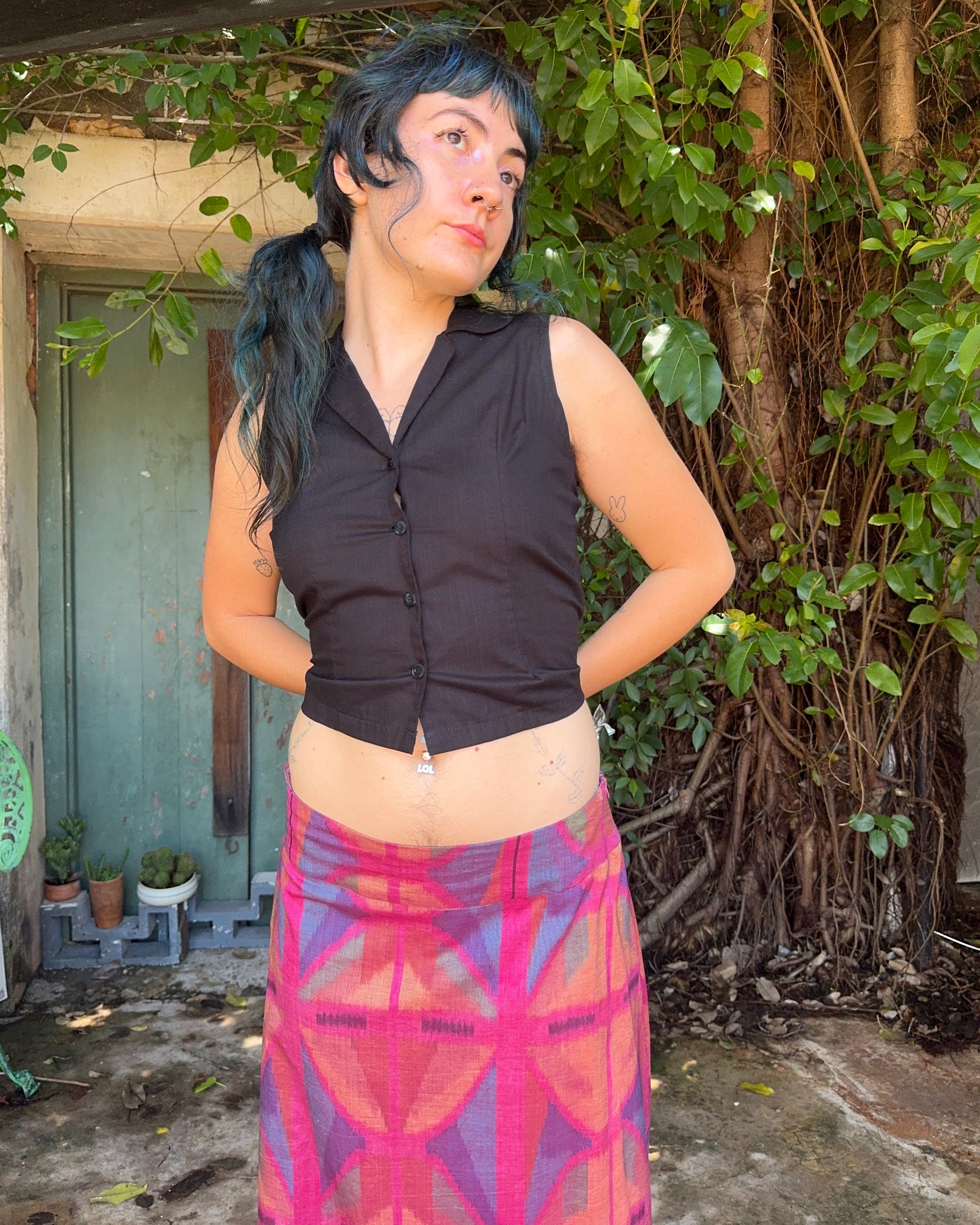 Midi A-line Skirt in our very own EXCLUSIVE Ikat screen-printed Breezeblock motif fabric,