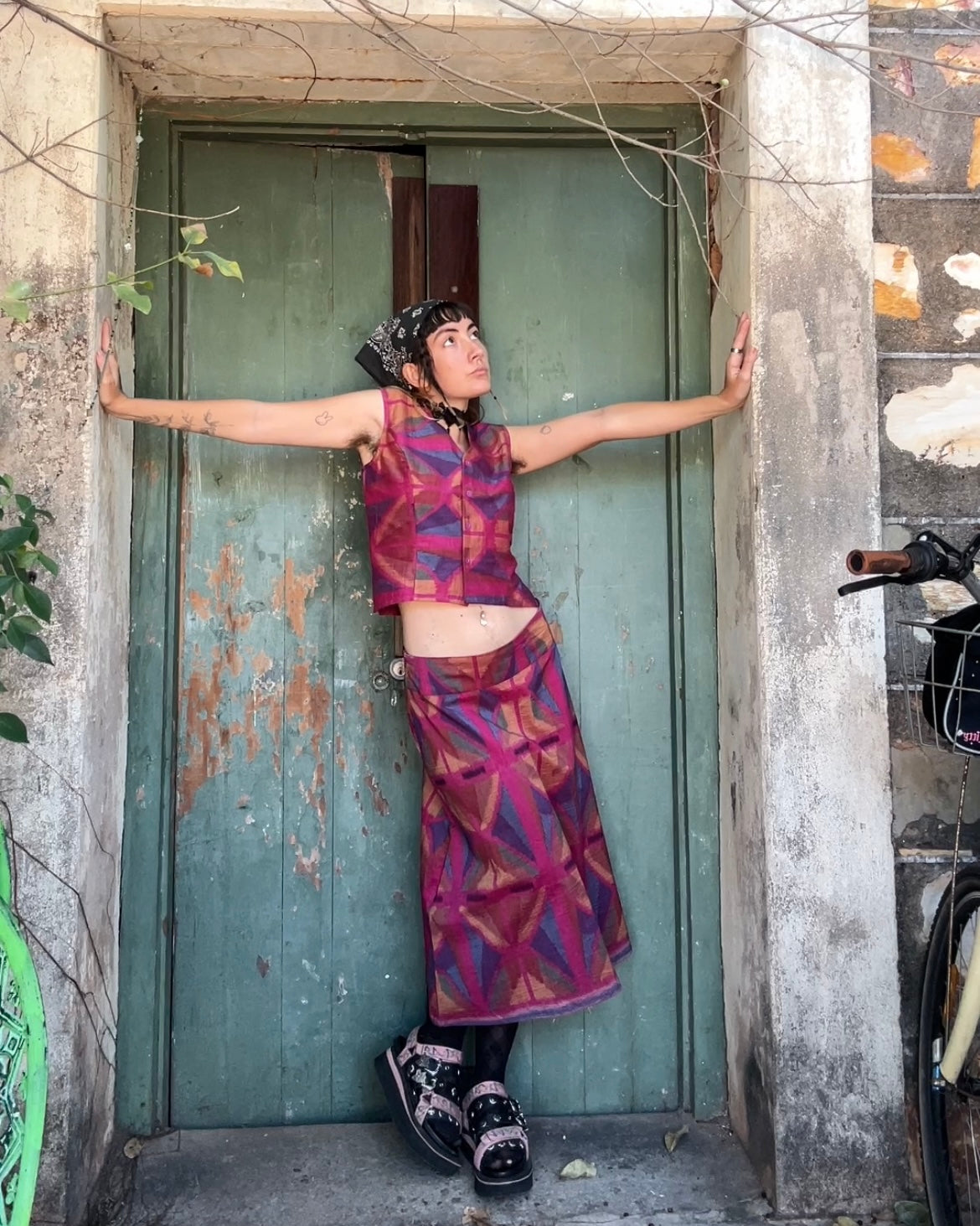 Midi A-line Skirt in our very own EXCLUSIVE Ikat screen-printed Breezeblock motif fabric in the scrumptious 8 colour Magenta Ikat colour way!