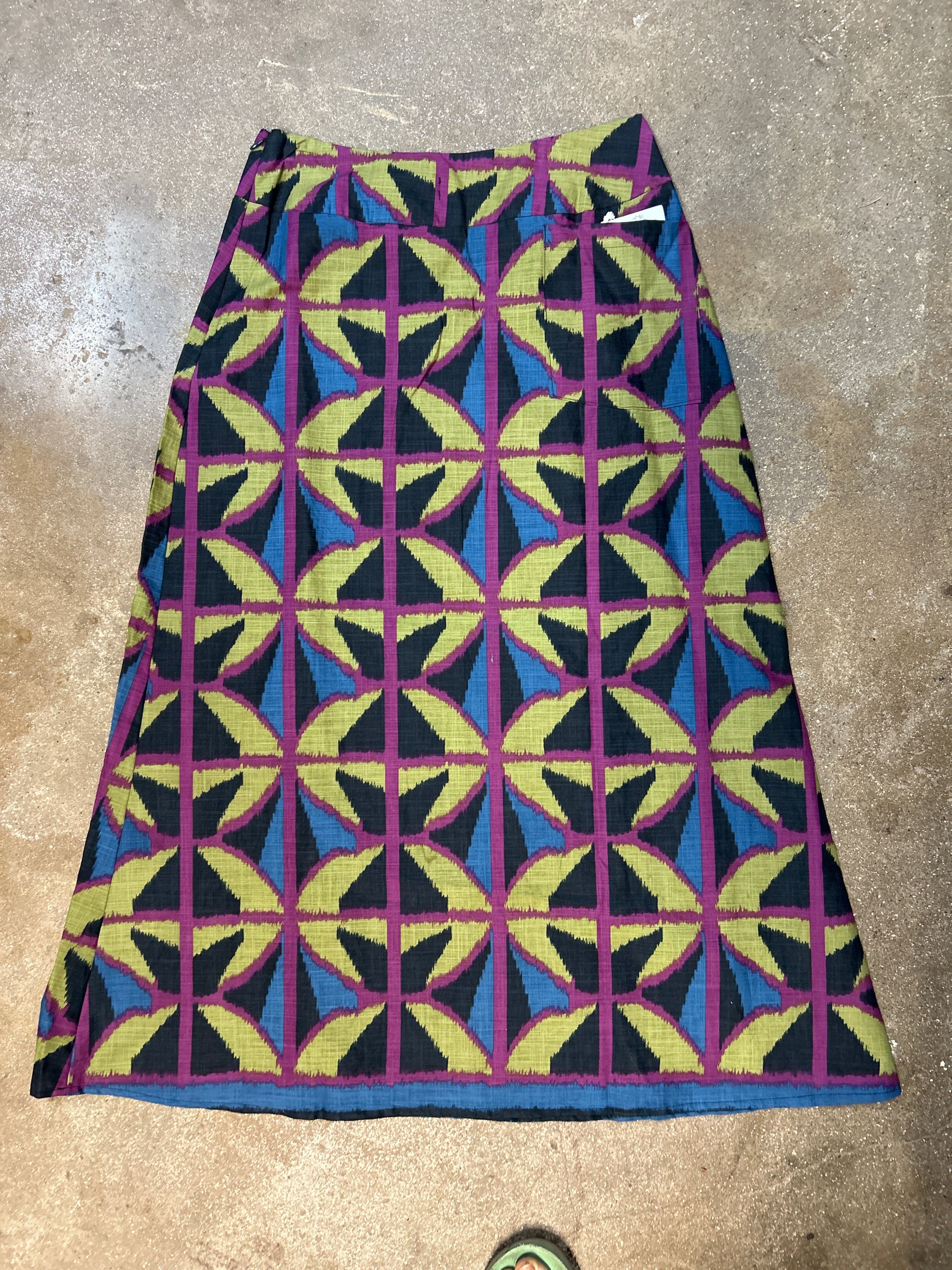 Long A-line Skirt in our very own EXCLUSIVE screen-printed Breezeblock motif fabric in the scrumptious Jewel spider colour way!