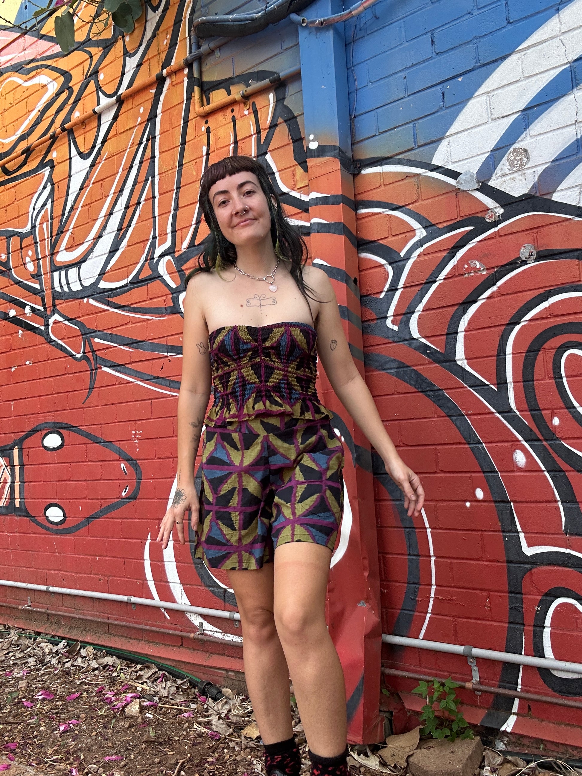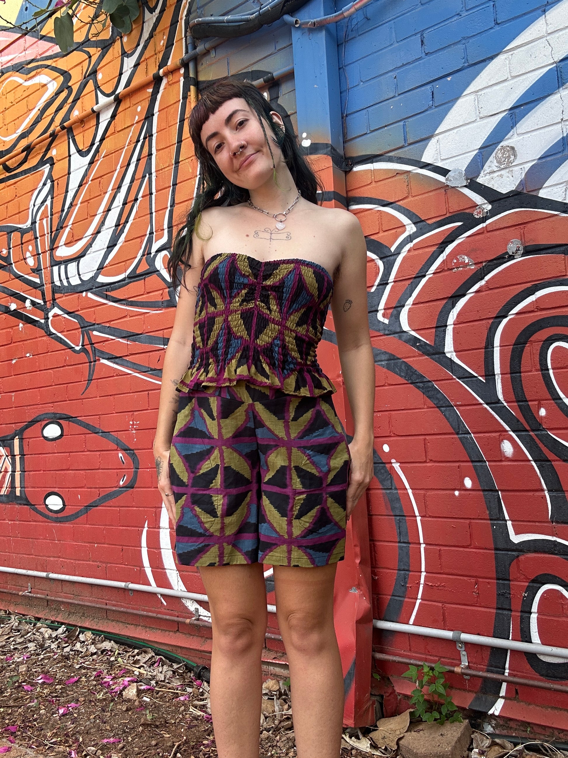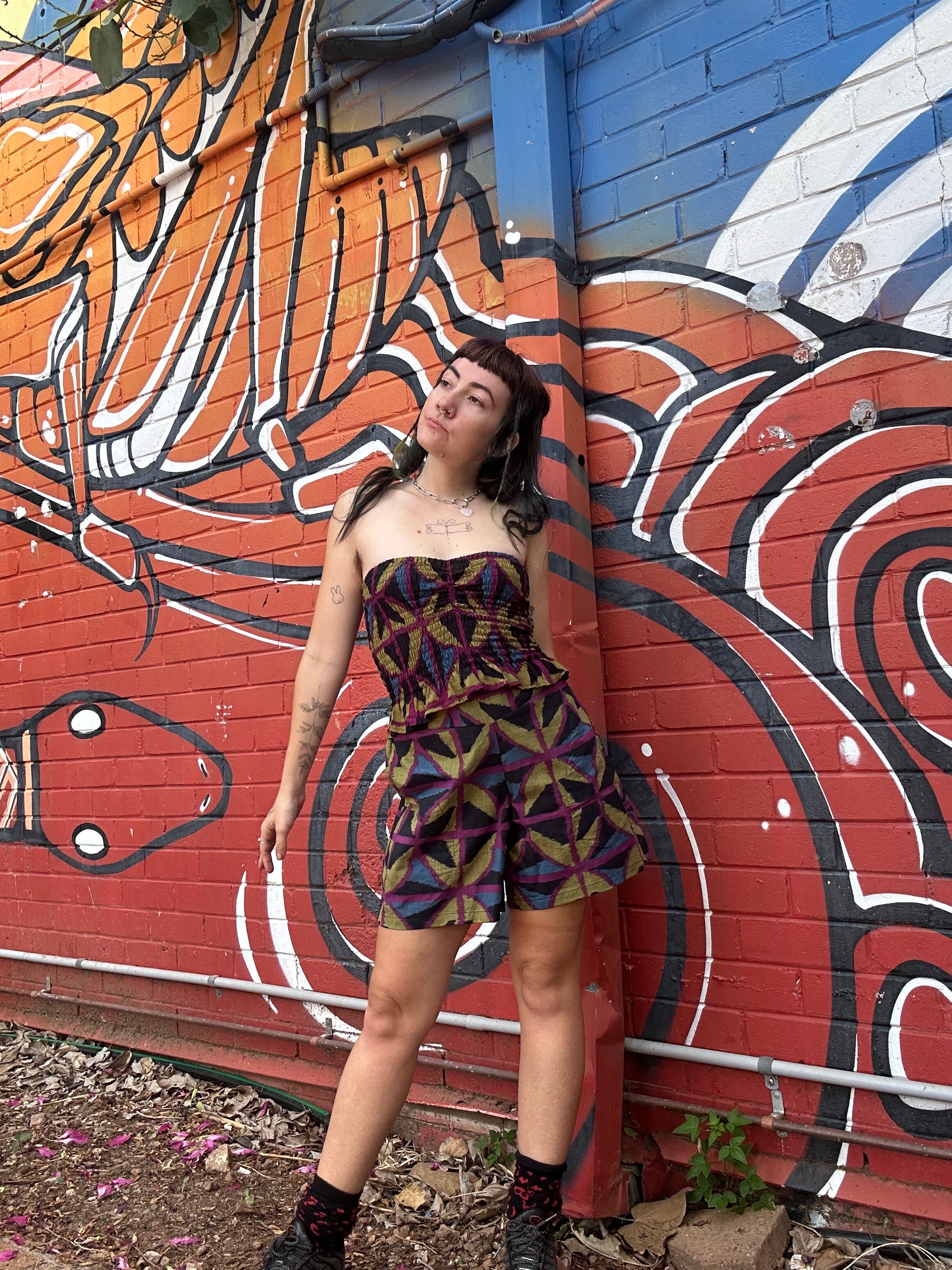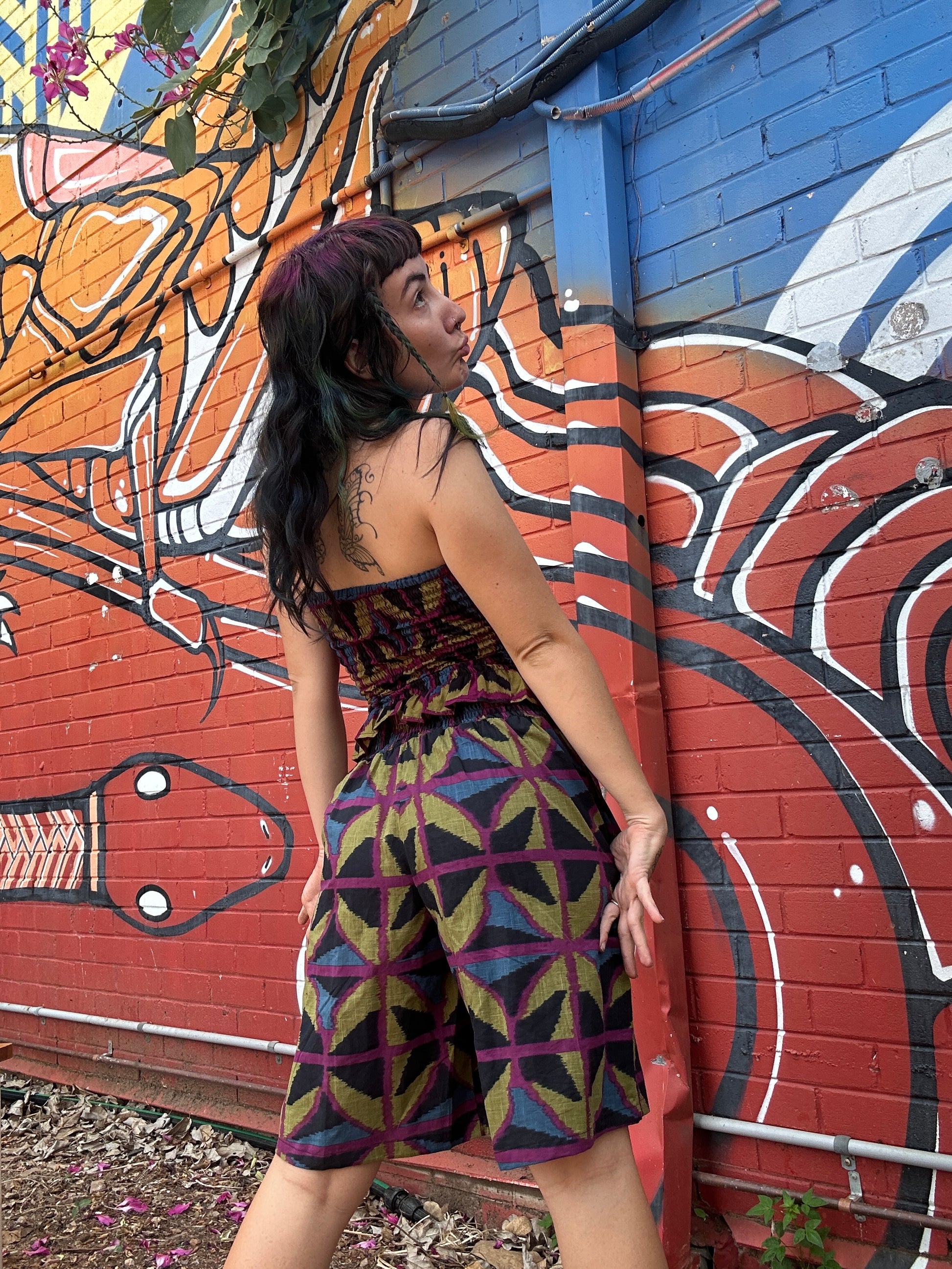 The scrumptious Jewel spider print in Our very own EXCLUSIVE screen-printed Breezeblock motif fabric in lightweight, cotton slub!