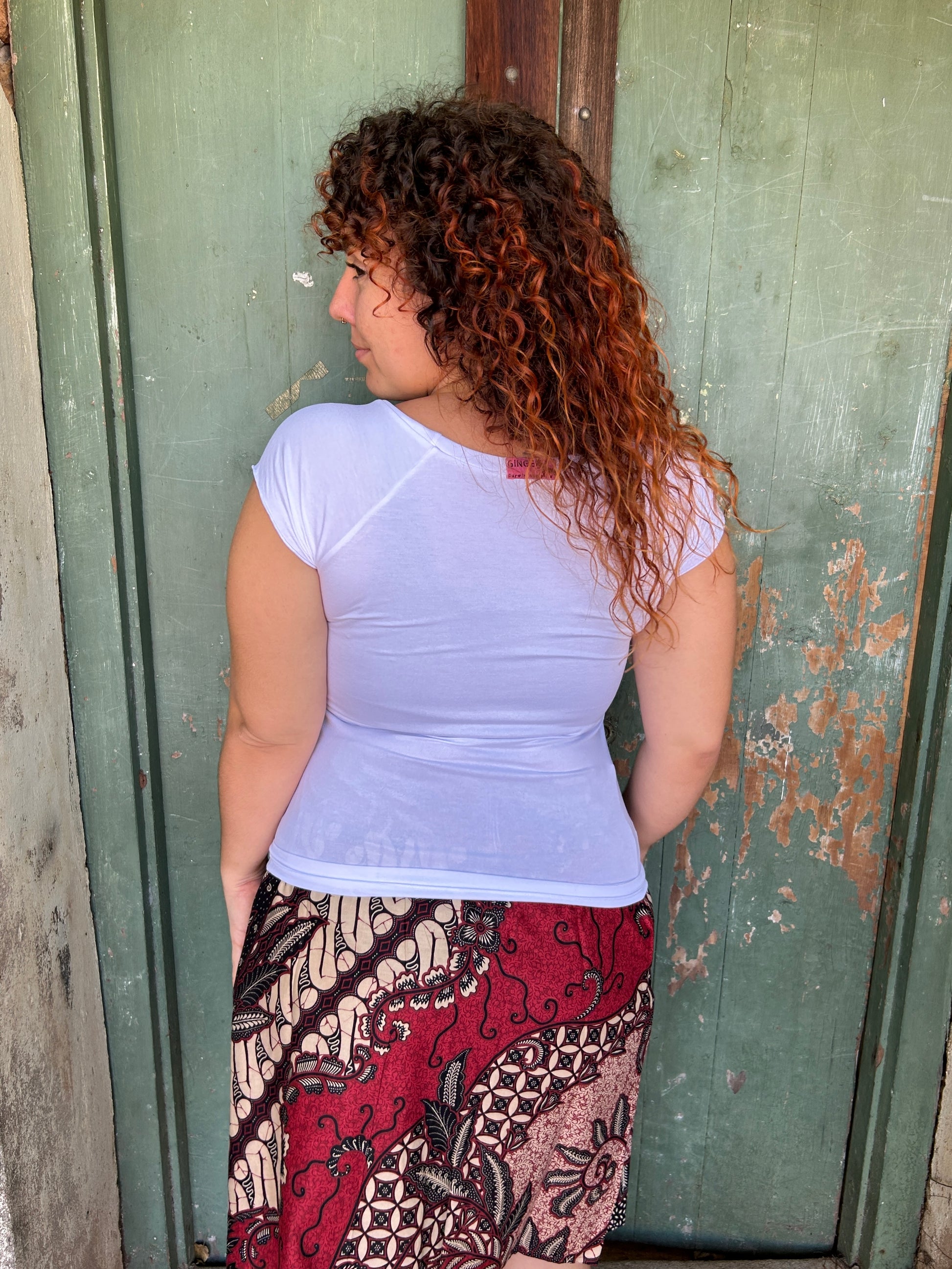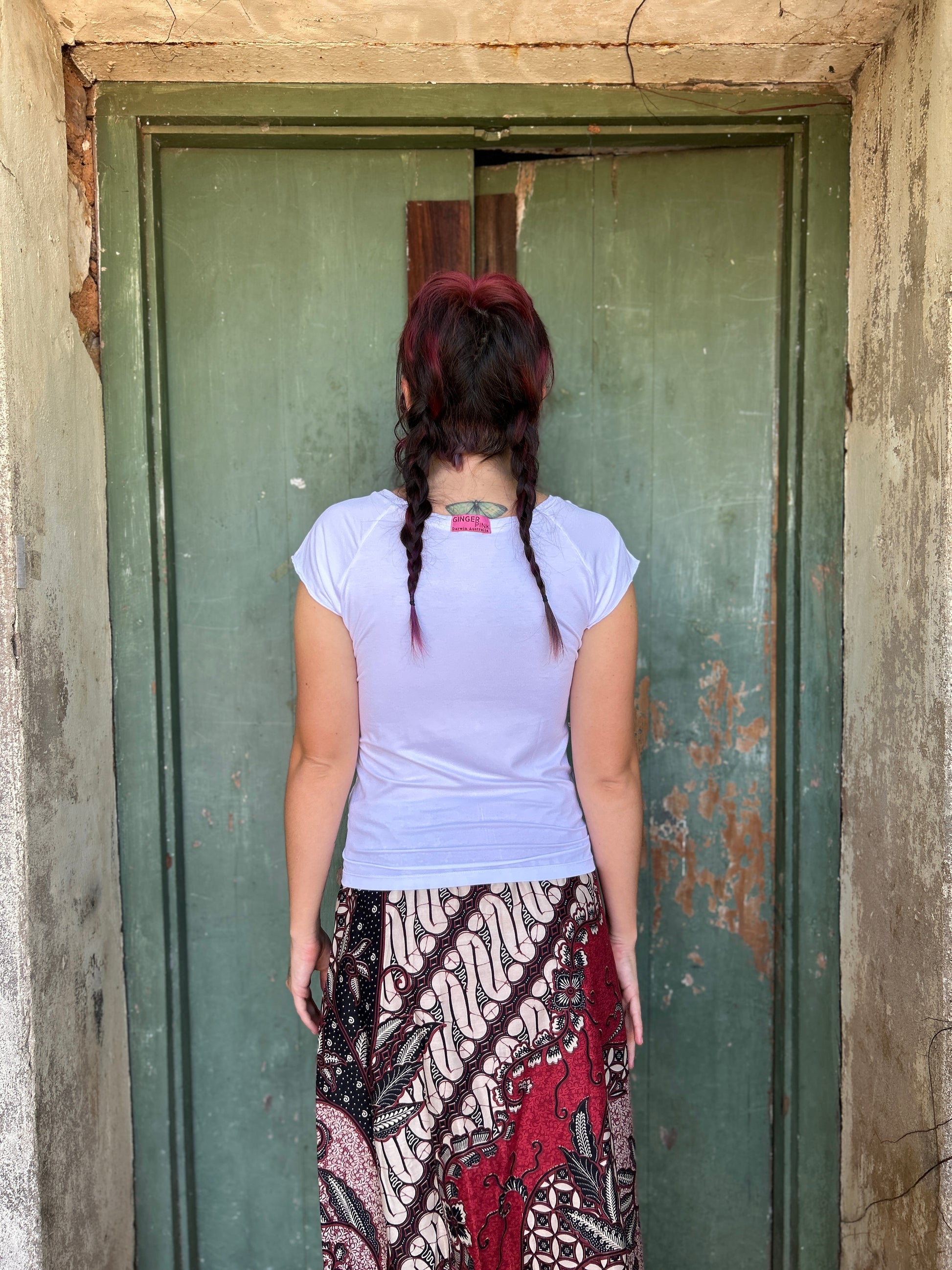 Our super cute tee in White, featuring raglan sleeves, and a thinner fabric.