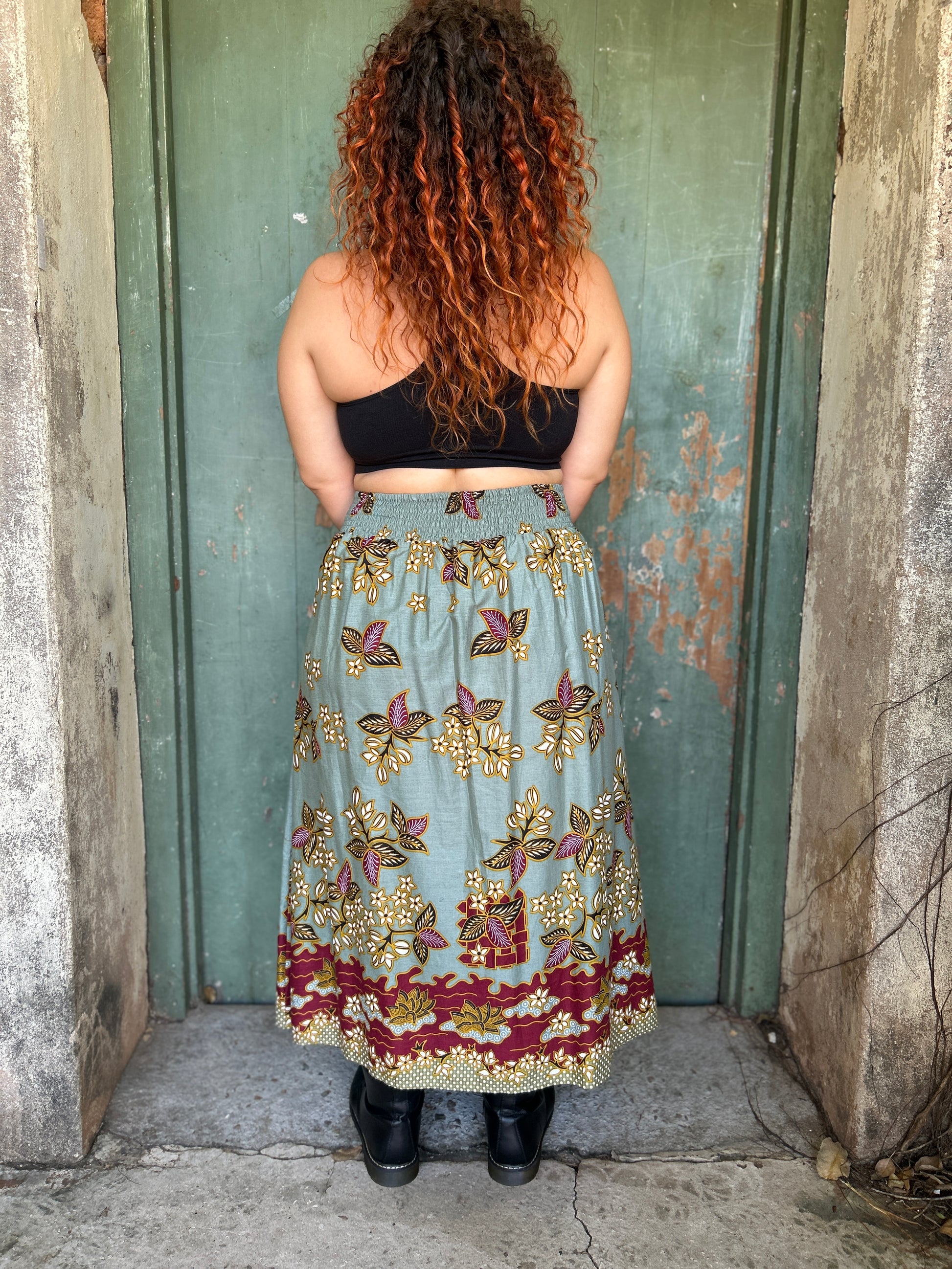 Designed for comfort, featuring front pleats below the front waistband , ruching at the back waistband, and deep inset side pockets; made with Cotton Batik print fabric.