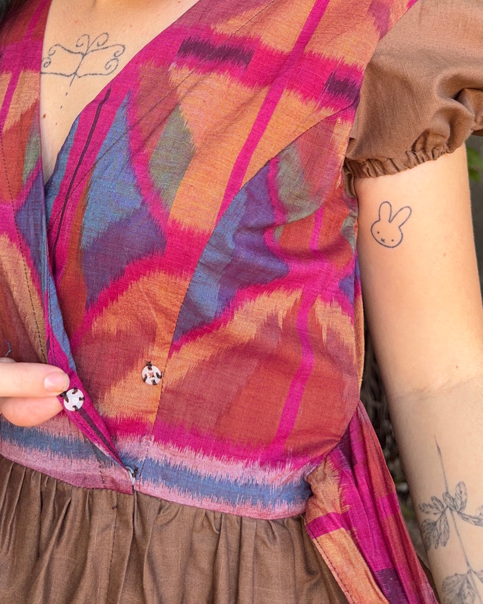 Puffy Brown Ikat Wrap Top
