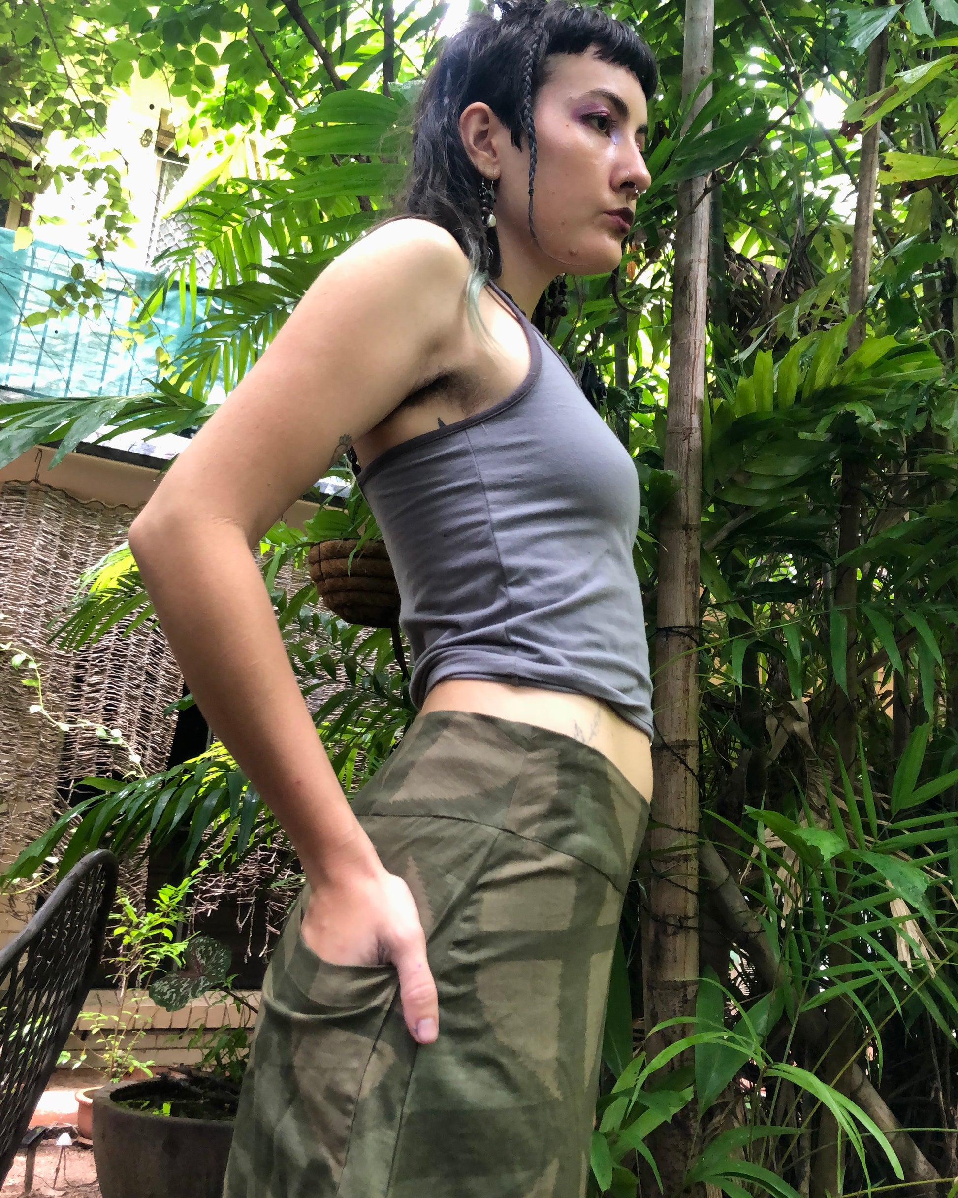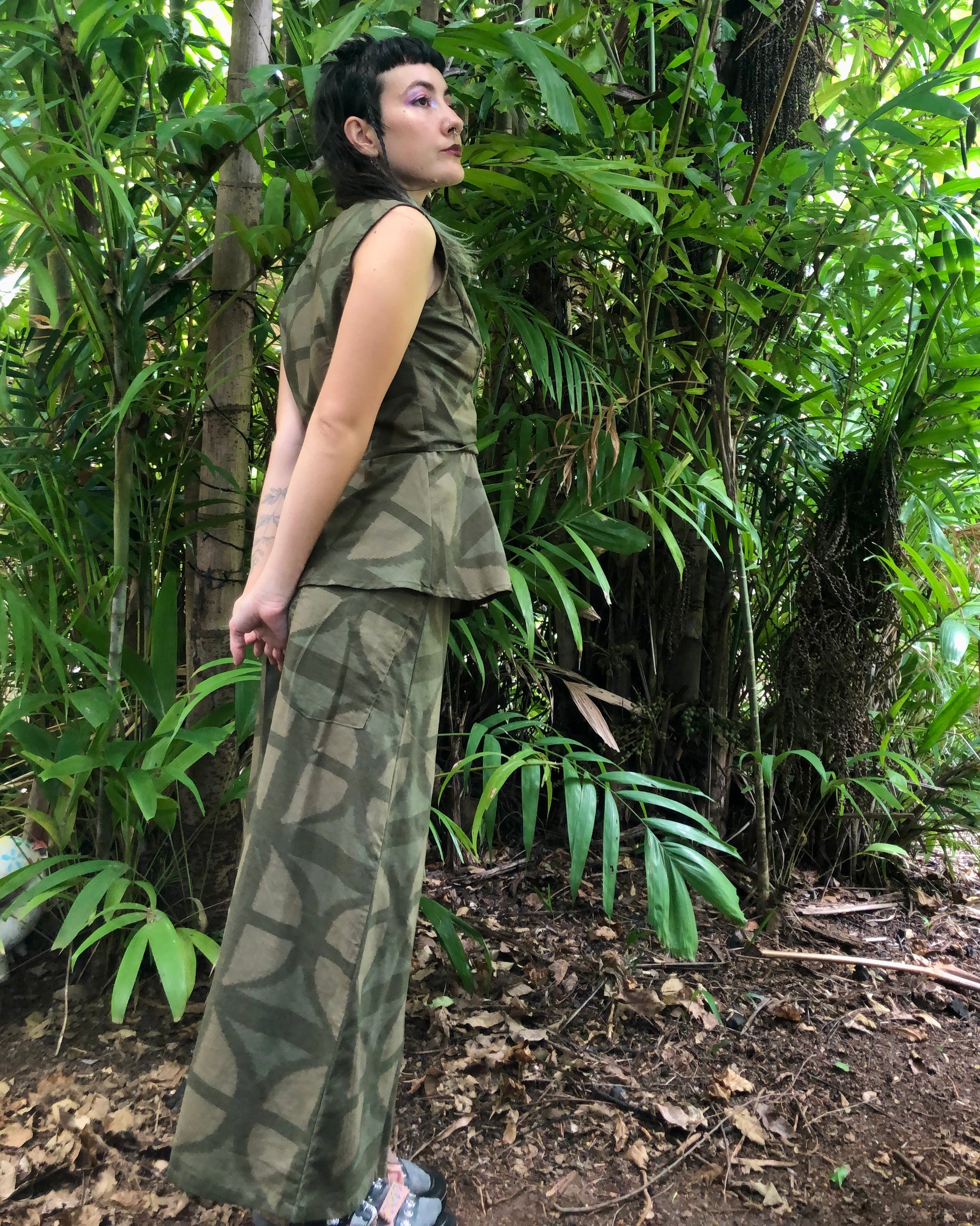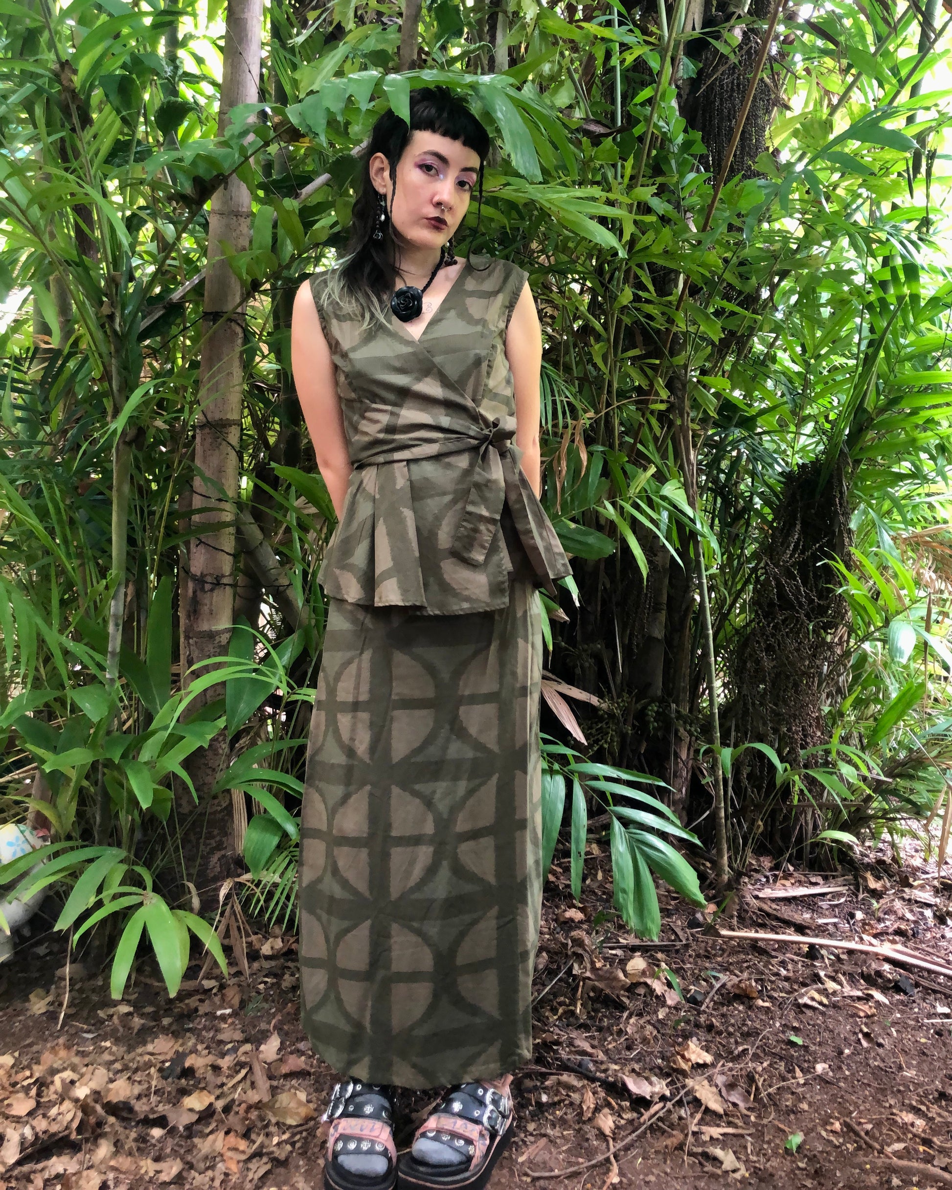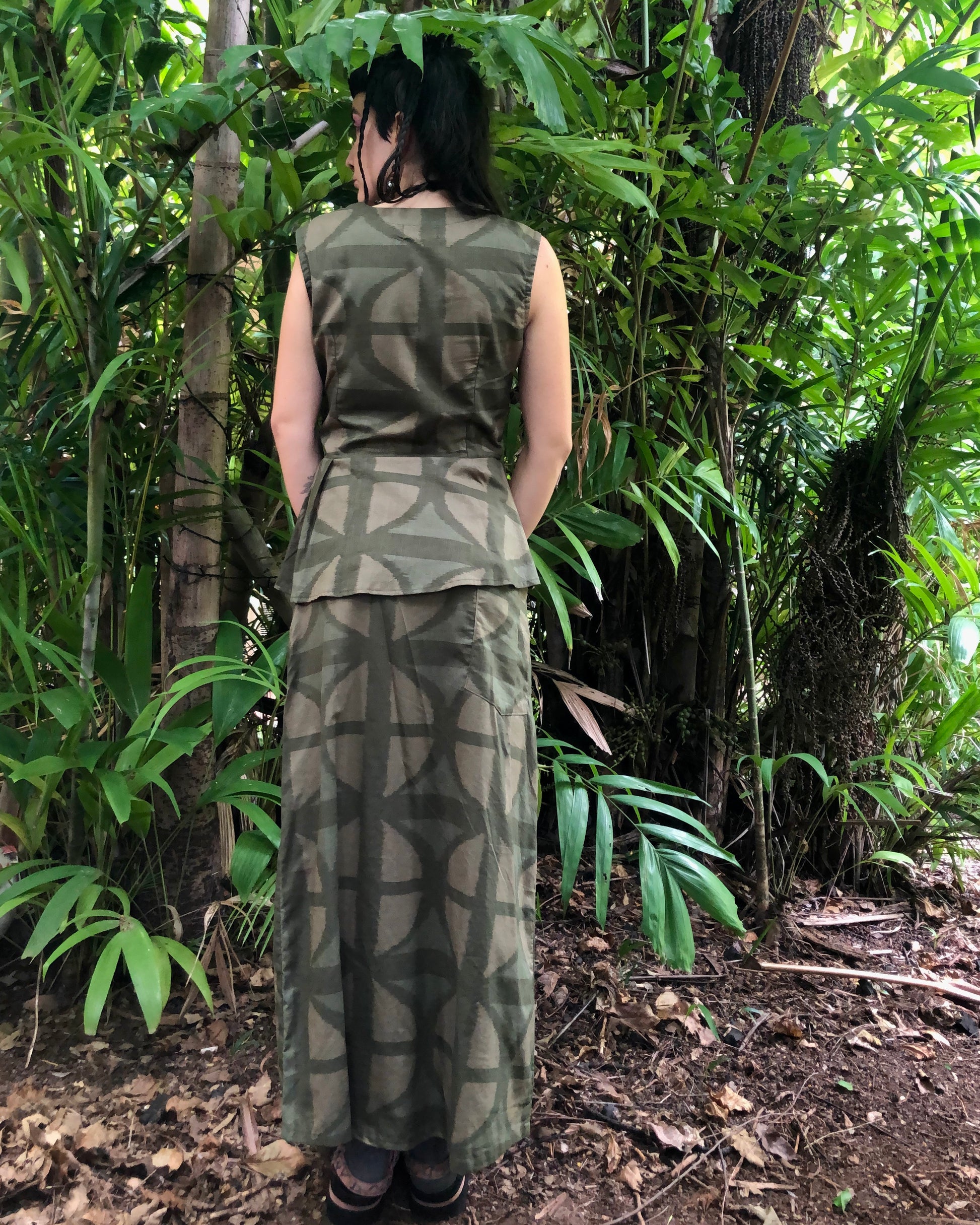 Long A-line Skirt in our very own EXCLUSIVE screen-printed Breezeblock motif fabric in lightweight, cotton slub! In our Urban Camo colour way!